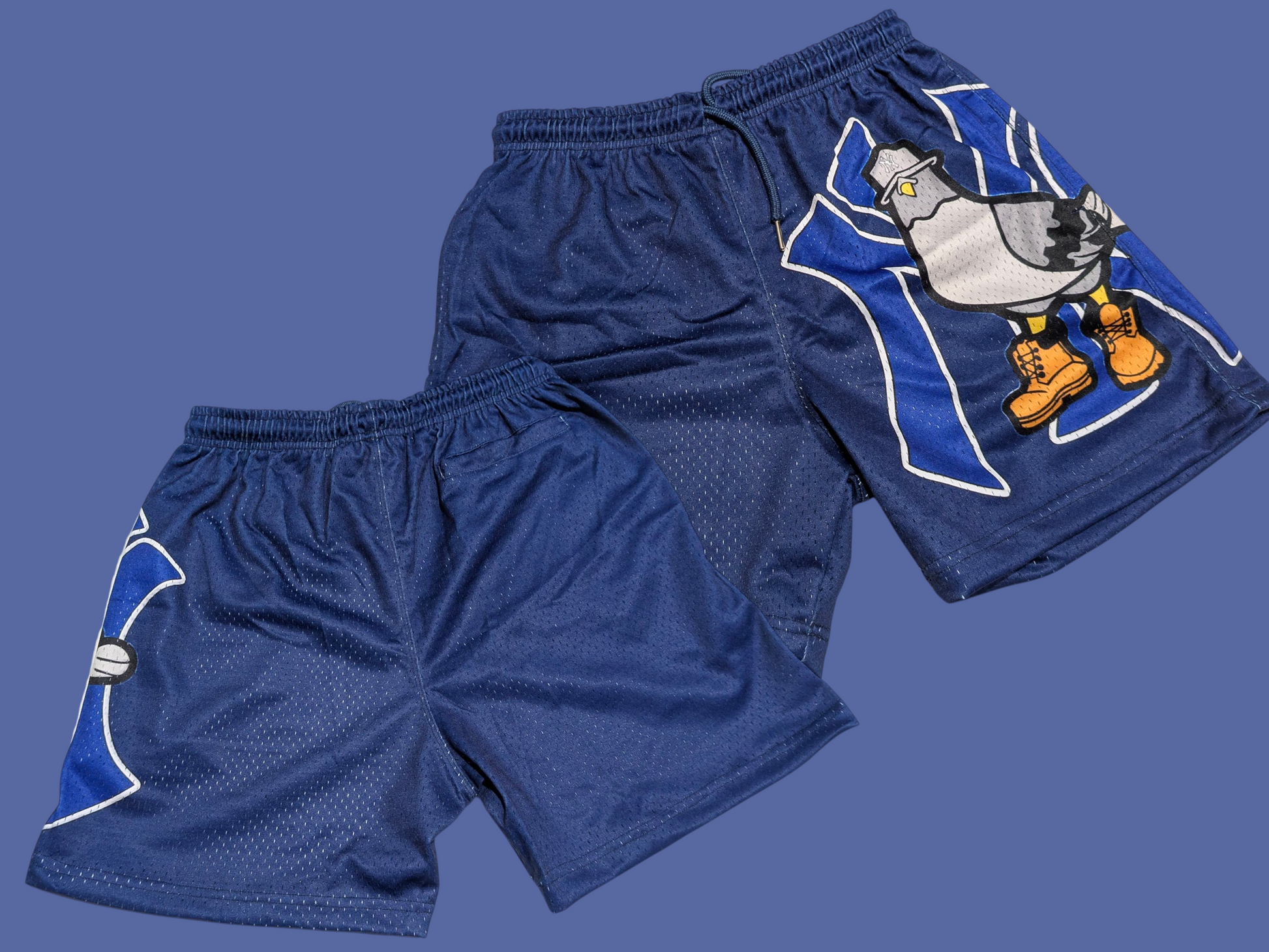 These shorts are straight-up NYC streetwear with attitude. They’re made from 100% breathable polyester mesh, rocking that classic basketball-short vibe but flipped with bold, Bird Block graphics.