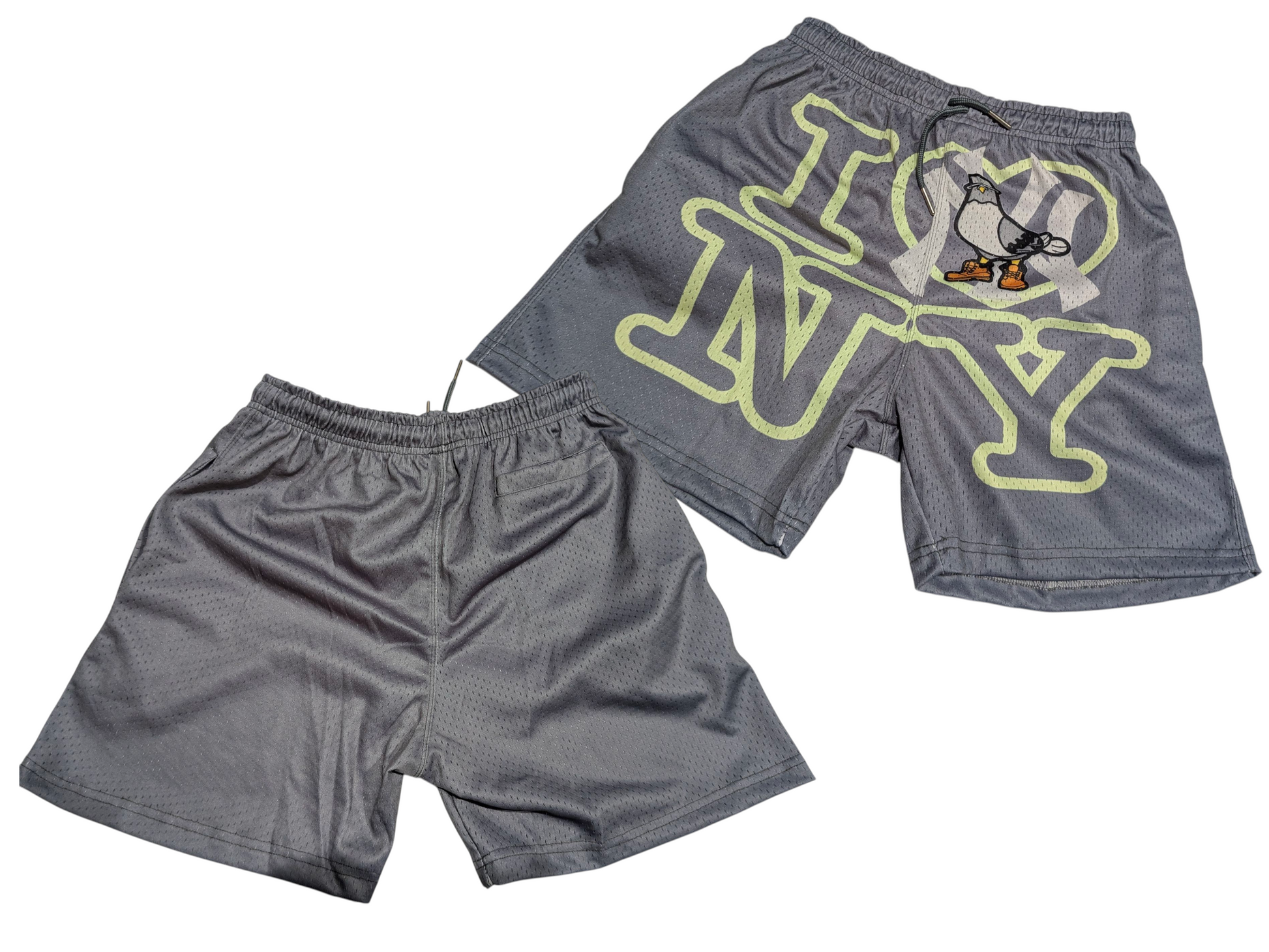 These shorts are straight-up NYC streetwear with attitude. They’re made from 100% breathable polyester mesh, rocking that classic basketball-short vibe but flipped with bold, Bird Block graphics.